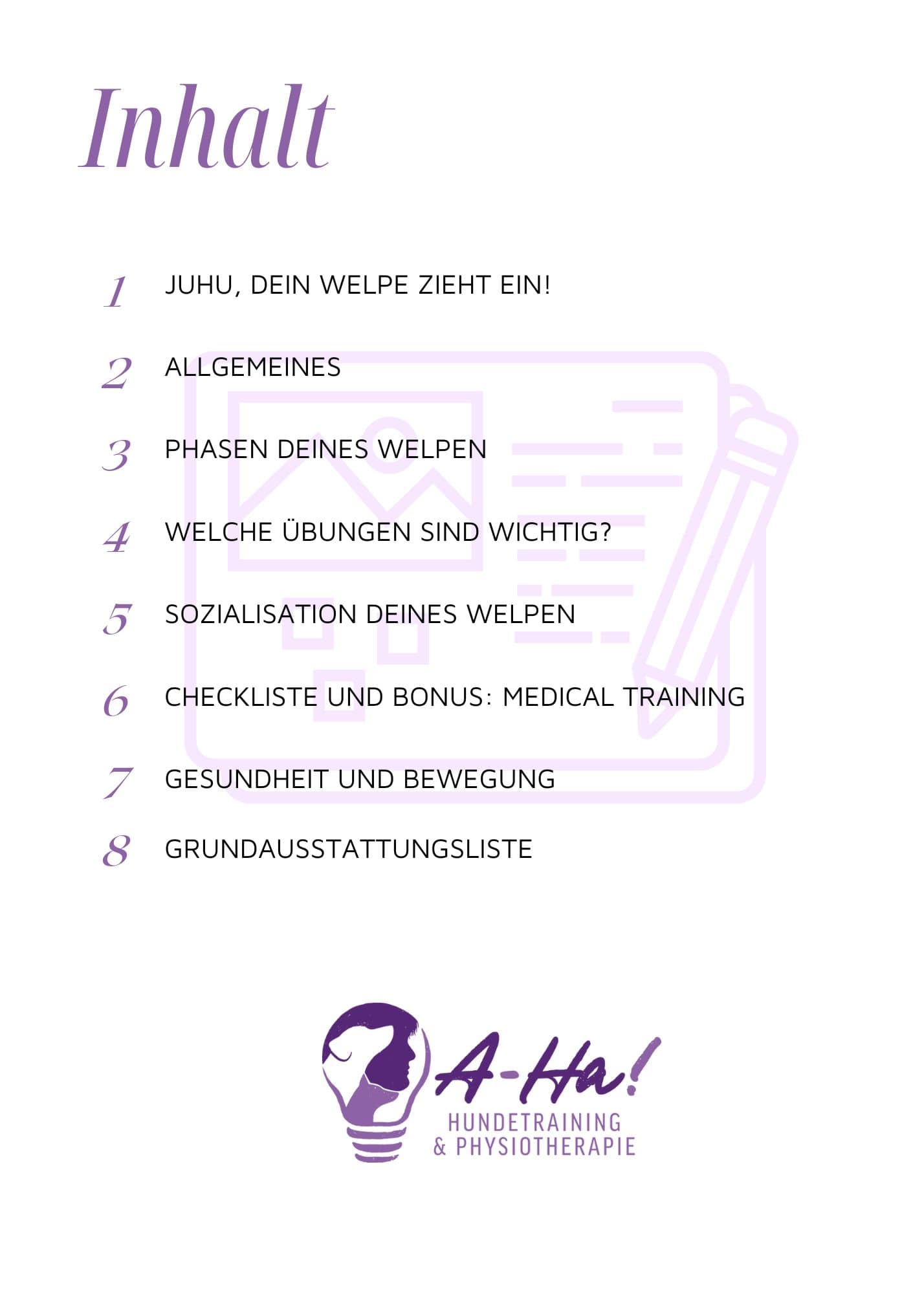 Dann ist das A-Ha! Welpen-Workbook genau das Richtige für Sie!